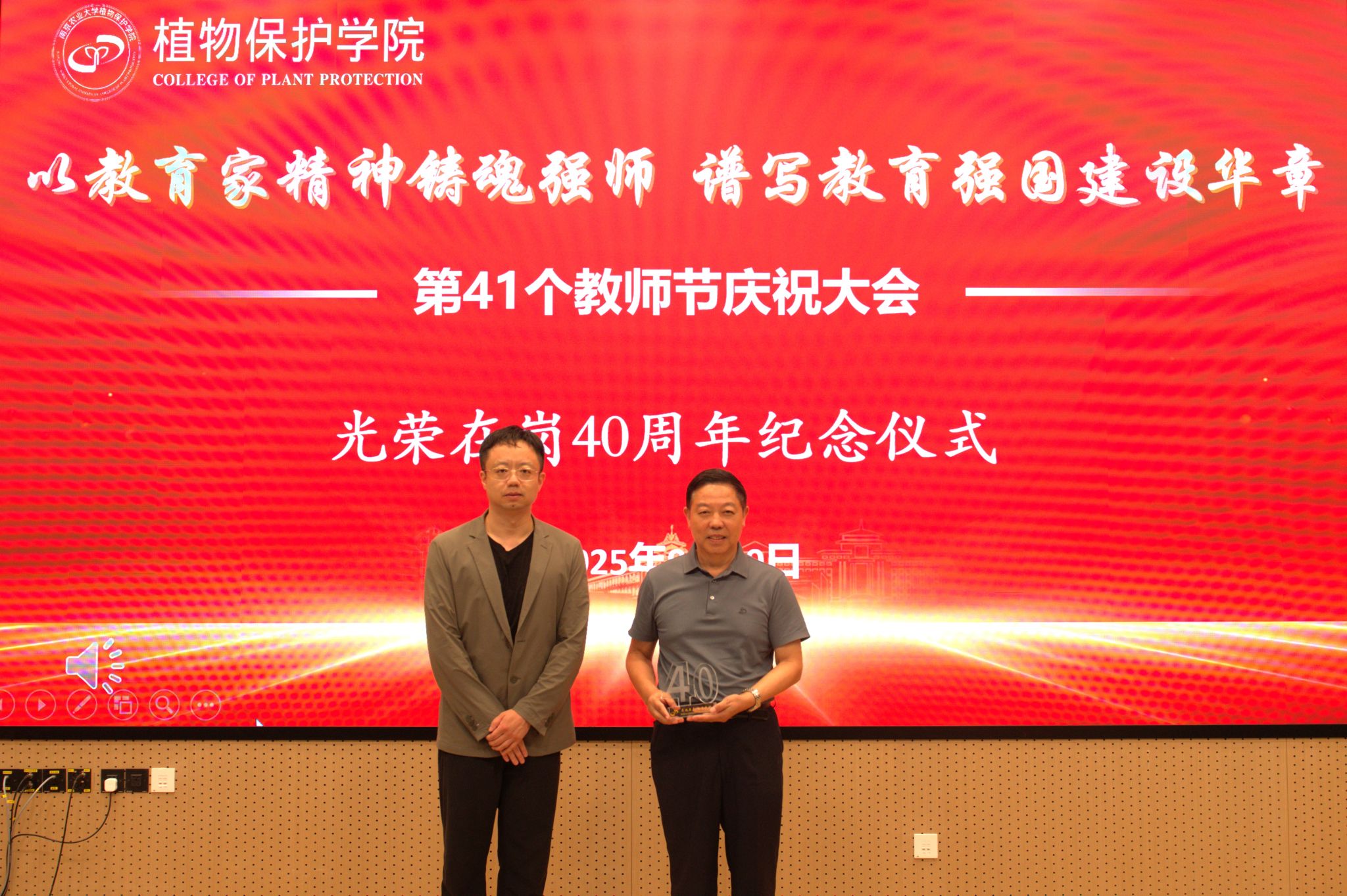 金秋送爽,硕果盈枝。在这个寓意着收获与感恩的美好时节,我们迎来了第41个教师节。9月10日下午,植物保护学院在21号楼114会议室举行“以教育家精神铸魂强师 谱写教育强国建设华章”主题教师节庆祝活动。活动由学院党委副书记陈志亮主持,全院教职工齐聚一堂,共同庆祝这个属于教育工作者的光荣节日。