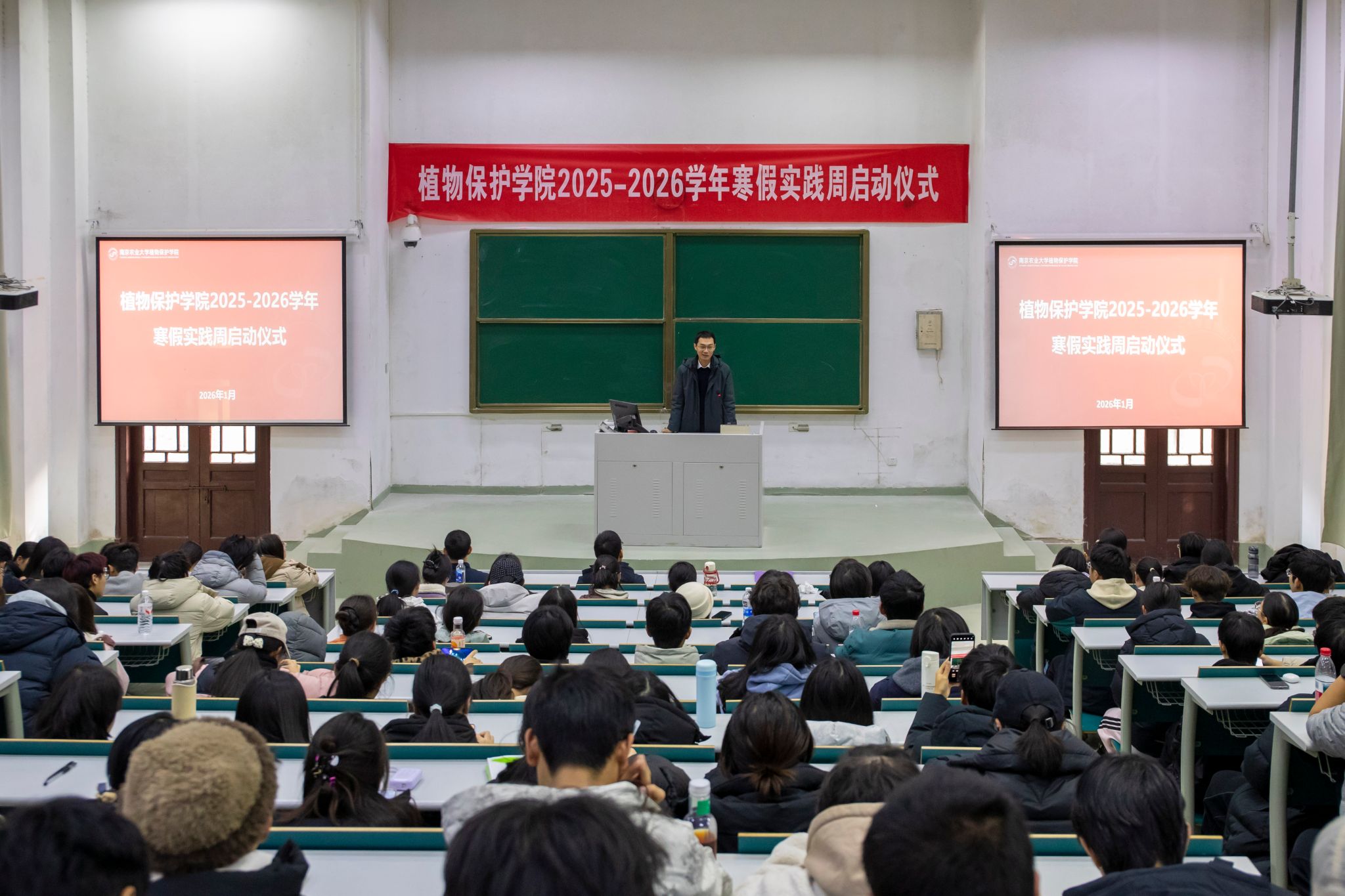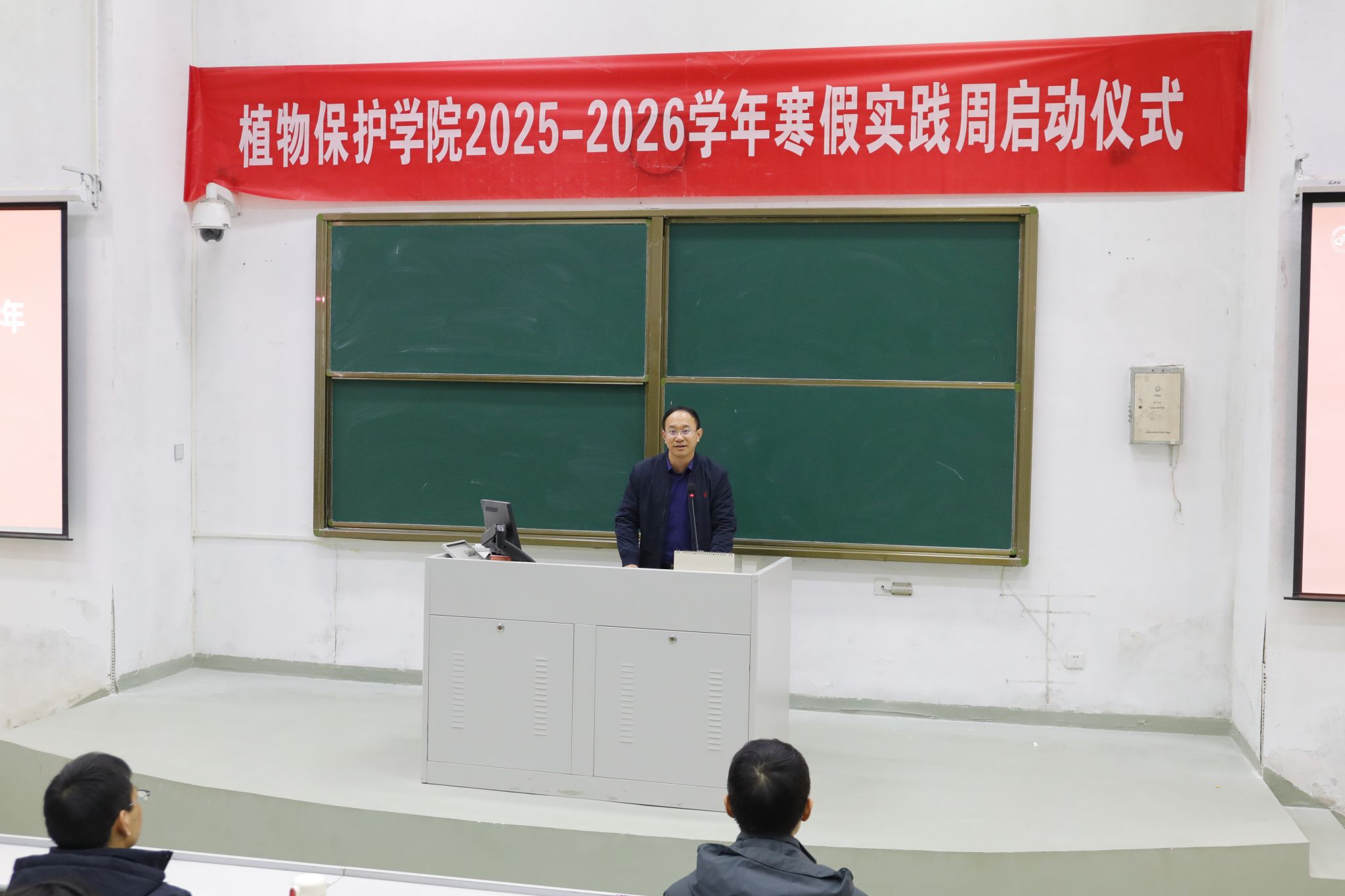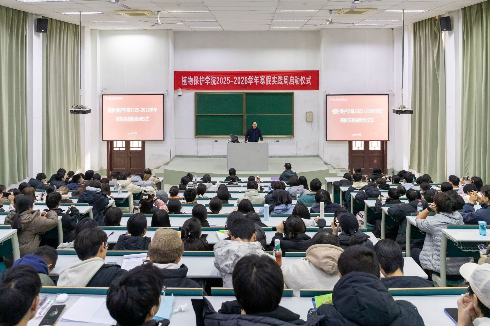 为全面深化实践育人成效,推动学生将专业理论与多元实践场景深度融合,1月12日,植物保护学院在卫岗校区主楼101教室举行2025-2026学年寒假实践周启动仪式。学院副院长刘鹏程、副书记陈志亮、各班班主任、辅导员、及教务秘书等参加活动。