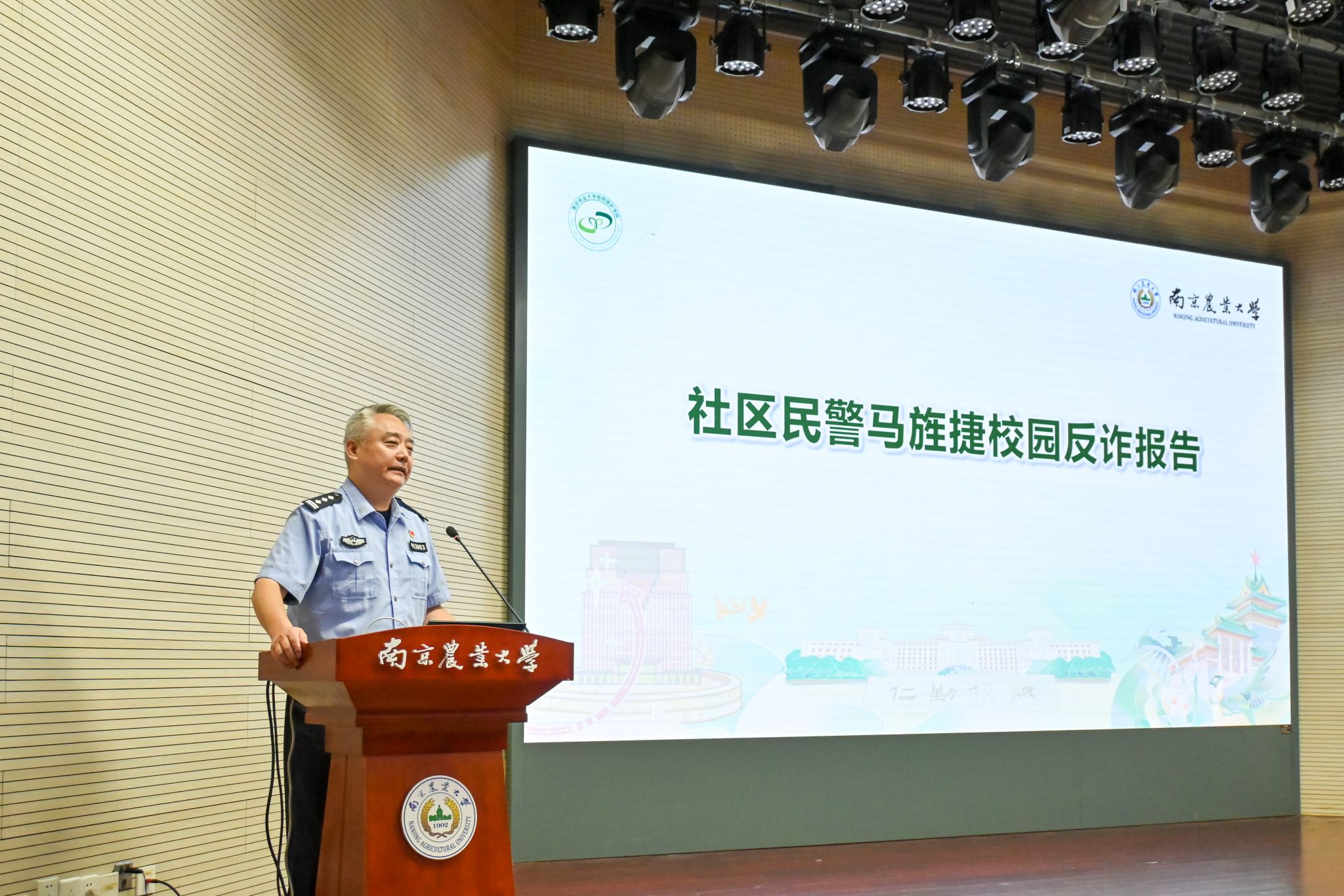 学院还邀请了社区民警马旌捷作反诈宣讲。他从衣食住行的生活各个方面,结合近期在校园内发生的真实案例,生动地为新生敲响反诈警钟,提醒同学们谨防电信诈骗,共同守护校园安全。