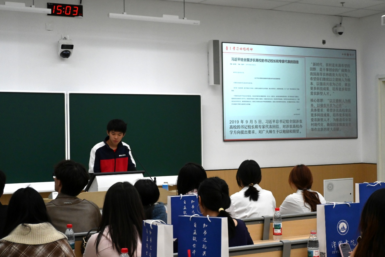 紧接着,学院团委副书记(学生)姚清带领大家共同学习了习近平总书记关于农业与审计领域相关的重要回信精神,学习贯彻党的二十届四中全会精神,号召大家将理论学习转化为实践动力,为中国式现代化挺膺担当。