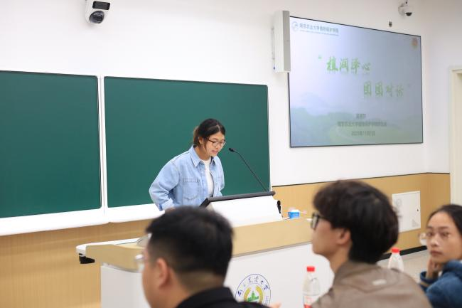 在工作交流环节,南京审计大学泽园书院团委副书记(学生)陈明旭、南京农业大学植物保护学院团委 学生会执行主席吴丽莎分别系统介绍了泽园书院及植保学院学生组织的基本概况、组织架构、工作的核心内容与运行规范,展现了两院在学生管理与服务方面的特色做法与成效。