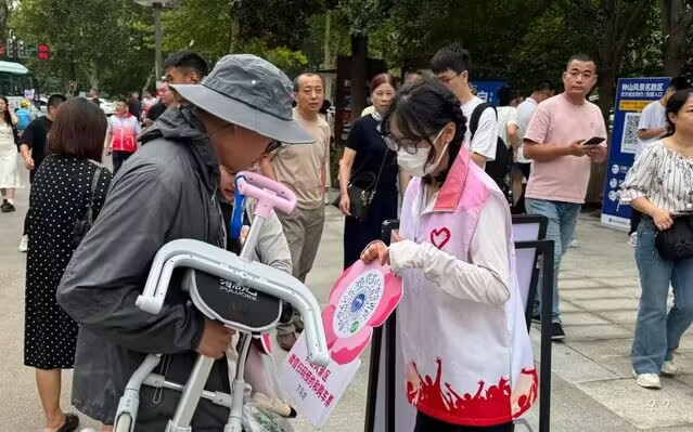 志愿身份:国庆身着红马甲在中山陵服务,为游客指路讲解,帮爷爷奶奶操作手机预约参观。微小举动,也能传递一座城市的温度。