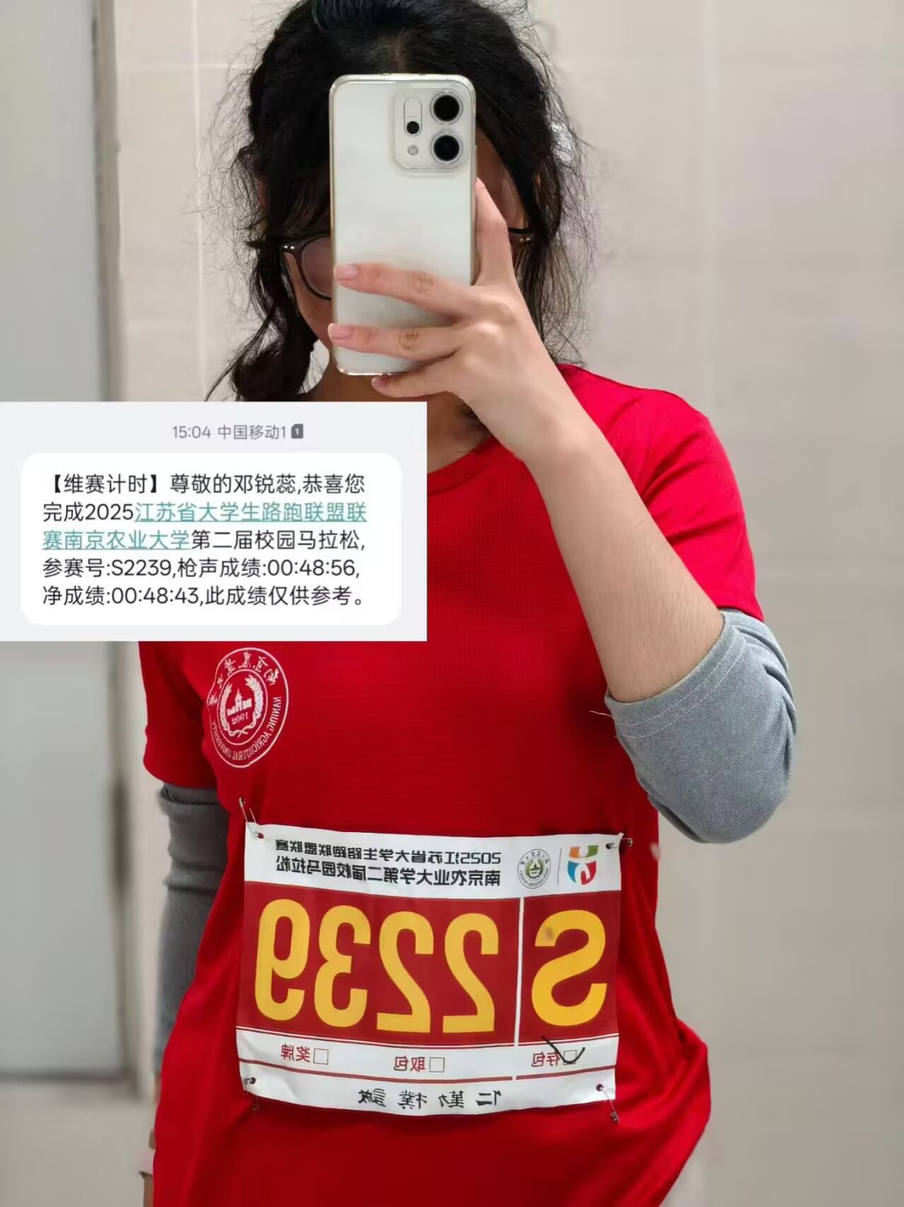 奔跑身份:微雨午后站上马拉松赛道,风掠过耳际,呼吸随步伐起伏。后半程腿如灌铅,几欲放弃,却在跑友鼓励与志愿者笑脸中咬牙冲线,收获女子8.8公里第20名——坚持到底,真的会收获满格成就感!